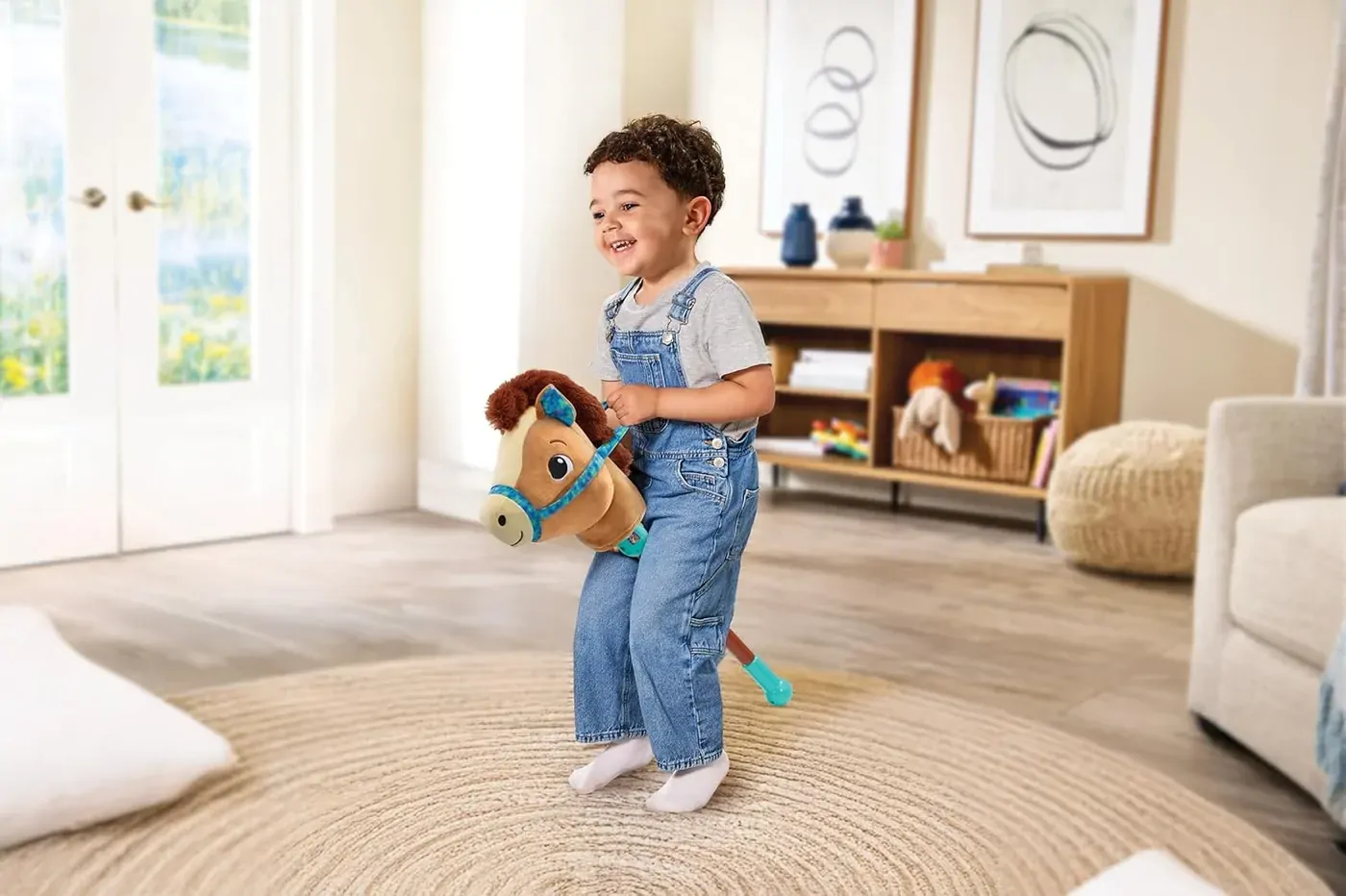 - Features a smart motion sensor that responds to your child's pace, playing gentle tunes during a slow trot and lively music during a fast gallop.