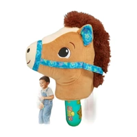 Saddle up for hours of galloping fun and learning with the VTech Trotting Tunes Hobby Horse. This interactive ride on toy is expertly designed to spark the imagination of toddlers and encourage active, energetic play. Children can choose between two engaging modes: one filled with upbeat songs for a musical adventure, and another that shares fascinating facts about horses, turning playtime into a learning experience. The innovative motion sensor is the heart of the fun, detecting whether your little cowboy or cowgirl is trotting gently or galloping at full speed, and adjusts the music tempo to match, creating an incredibly responsive and immersive play experience. The light up star button adds another layer of interactivity, rewarding each press with sounds and musical surprises. With its simple assembly and durable construction, this hobby horse is ready for countless adventures indoors or out. It's the perfect gift to inspire creative role play, develop gross motor skills, and fill playtime with the joy of imaginative exploration.