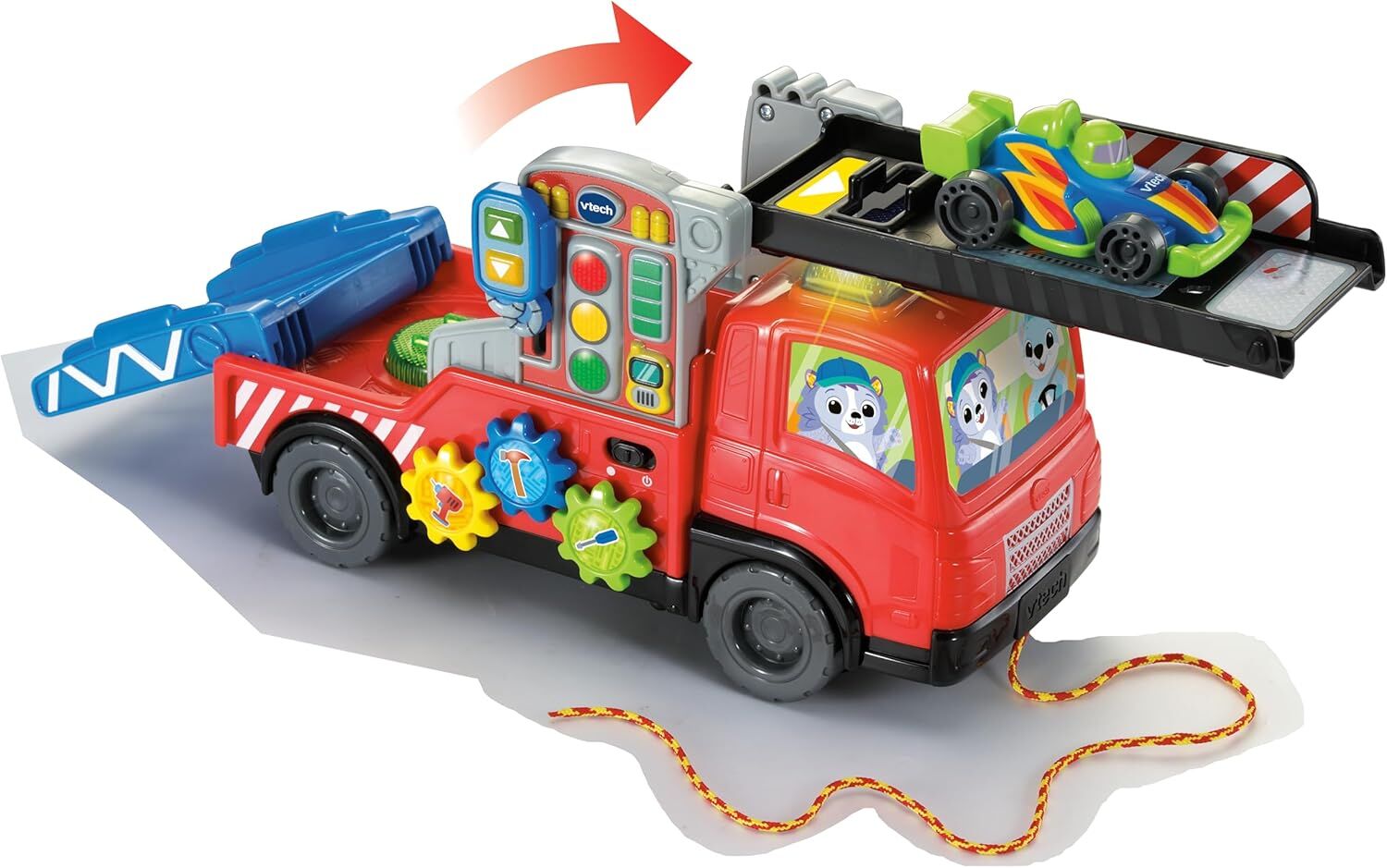 • Transport two cars inside or on top of the Car Carrier Truck to trigger sound effects and phrases
