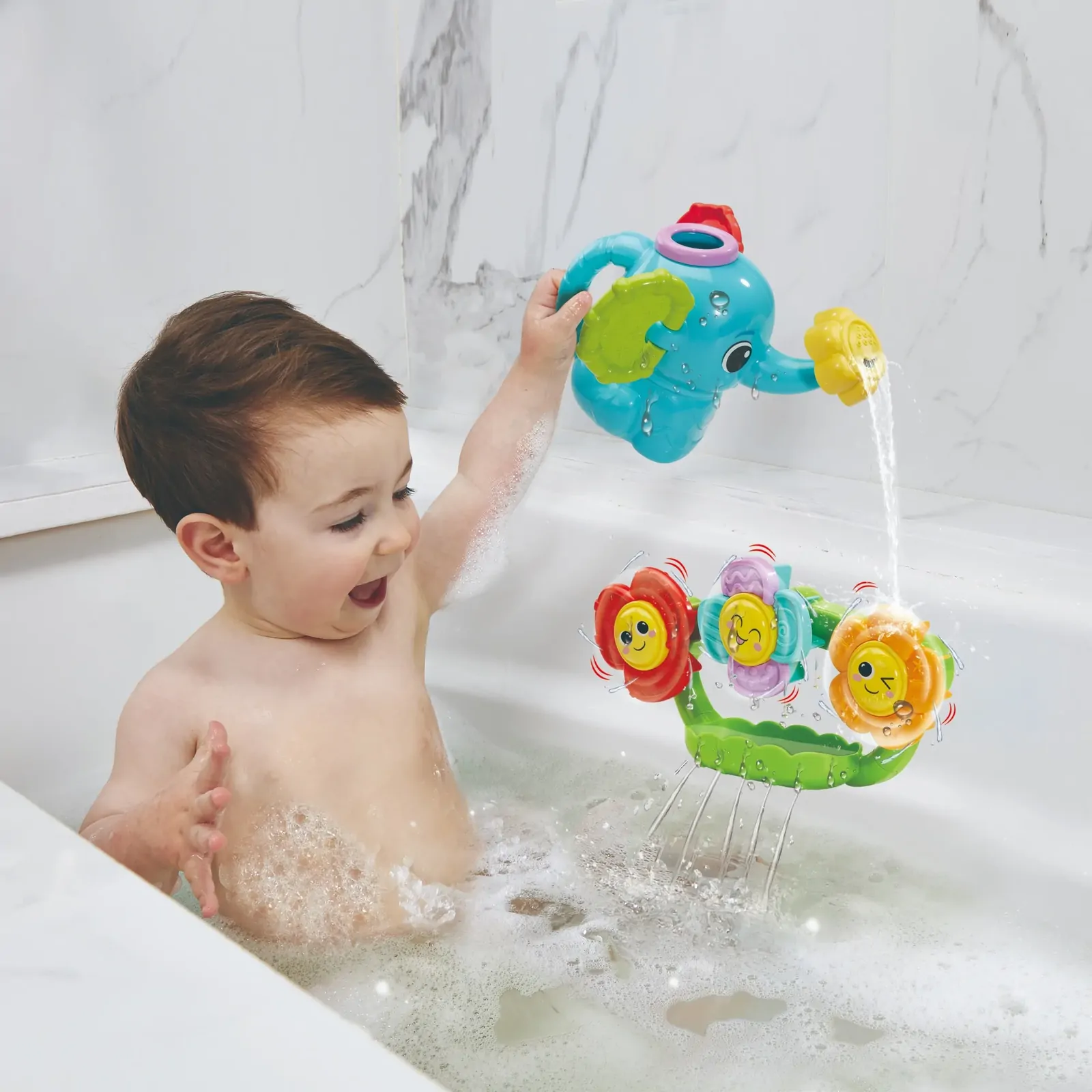 Make watering time magical with the Splash & Spin Bathtime Flowers! Tilt the cheerful elephant’s trunk to pour water and watch the colourful flowers below spin and twirl with every splash. Featuring two easy-to-use spouts for different pouring styles, this engaging toy turns bath or water play into a sensory adventure. The spinning flowers come with varied textures to stimulate touch and curiosity, and they easily attach to smooth surfaces using built-in suction cup. Perfect for bath time fun, this interactive toy encourages coordination, motor skills, and imaginative play—bringing joyful splashes and spinning surprises every time!