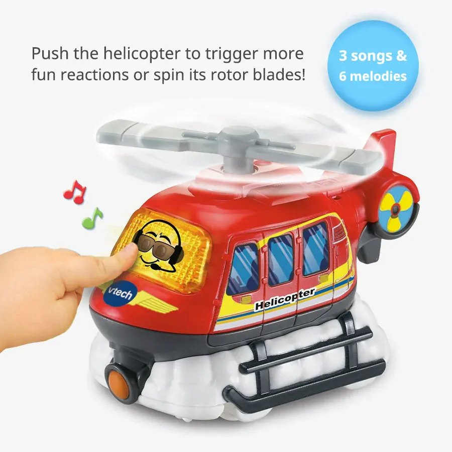 • Cute Helicopter will entertain your child with the light up face button that triggers fun music realistic sound effects and songs