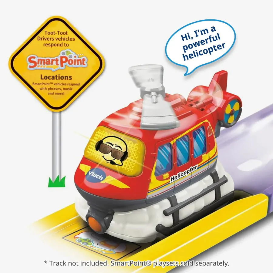 • Helicopter responds to SmartPoint™ locations with different phrases and more on Toot-Toot Drivers® play sets (each sold separately).
