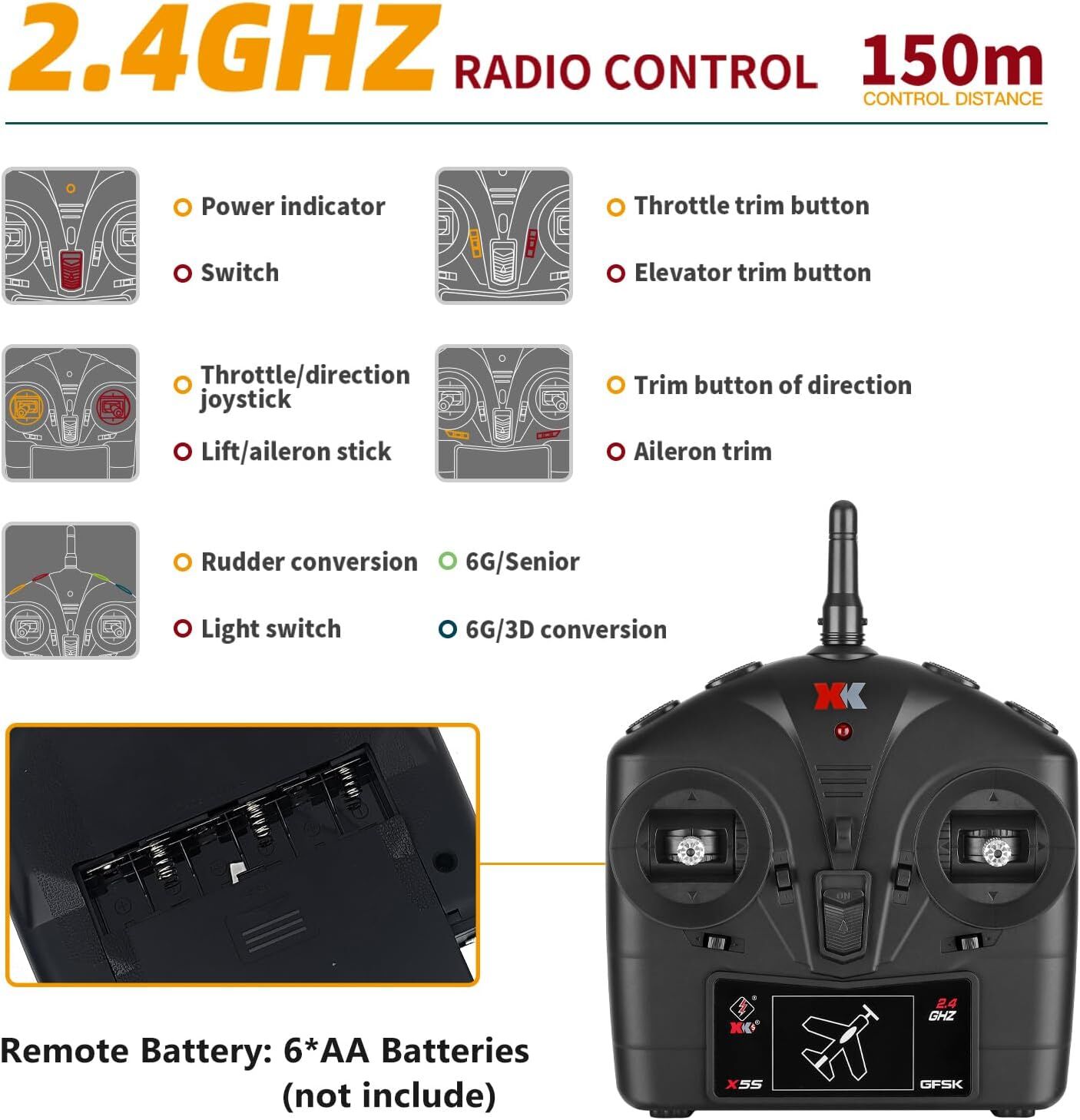 - Controller: Ergonomic 2.4GHz Transmitter