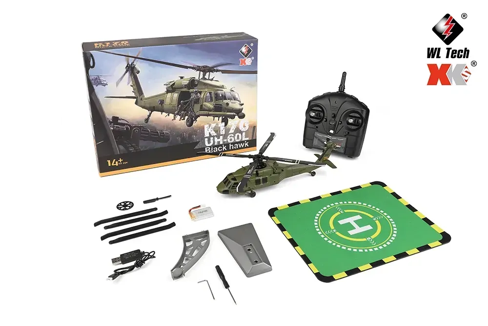 Highly Realistic UH-60L Black Hawk Scale Model: Designed as a true-to-scale restoration of the UH-60L Black Hawk, this flybarless helicopter features a finely detailed exterior and a four-blade rotor system for high simulation accuracy.