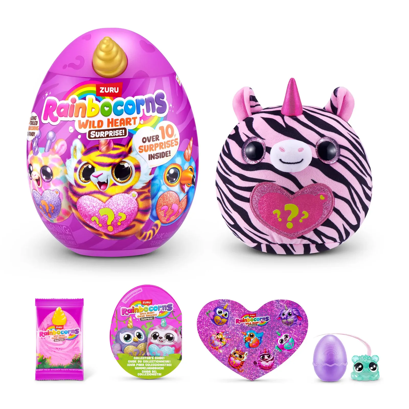Step into Rainboville with the Rainbocorns Wild Heart Surprise by ZURU. Each egg opens to reveal a soft, cuddly Rainbocorn plush plus over 10 exciting surprises including Boo Boocorns, stickers and squishy slime. With 7 wild characters to collect, this surprise egg is perfect for kids who love unboxing, collecting and imaginative play.