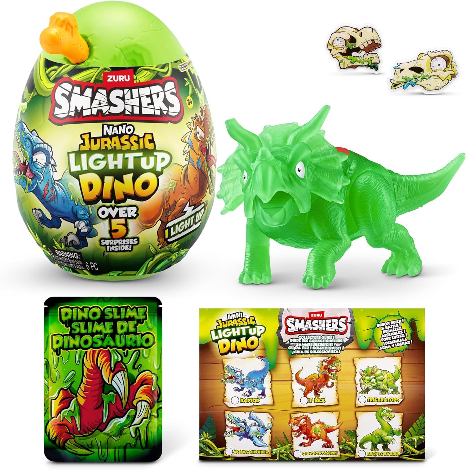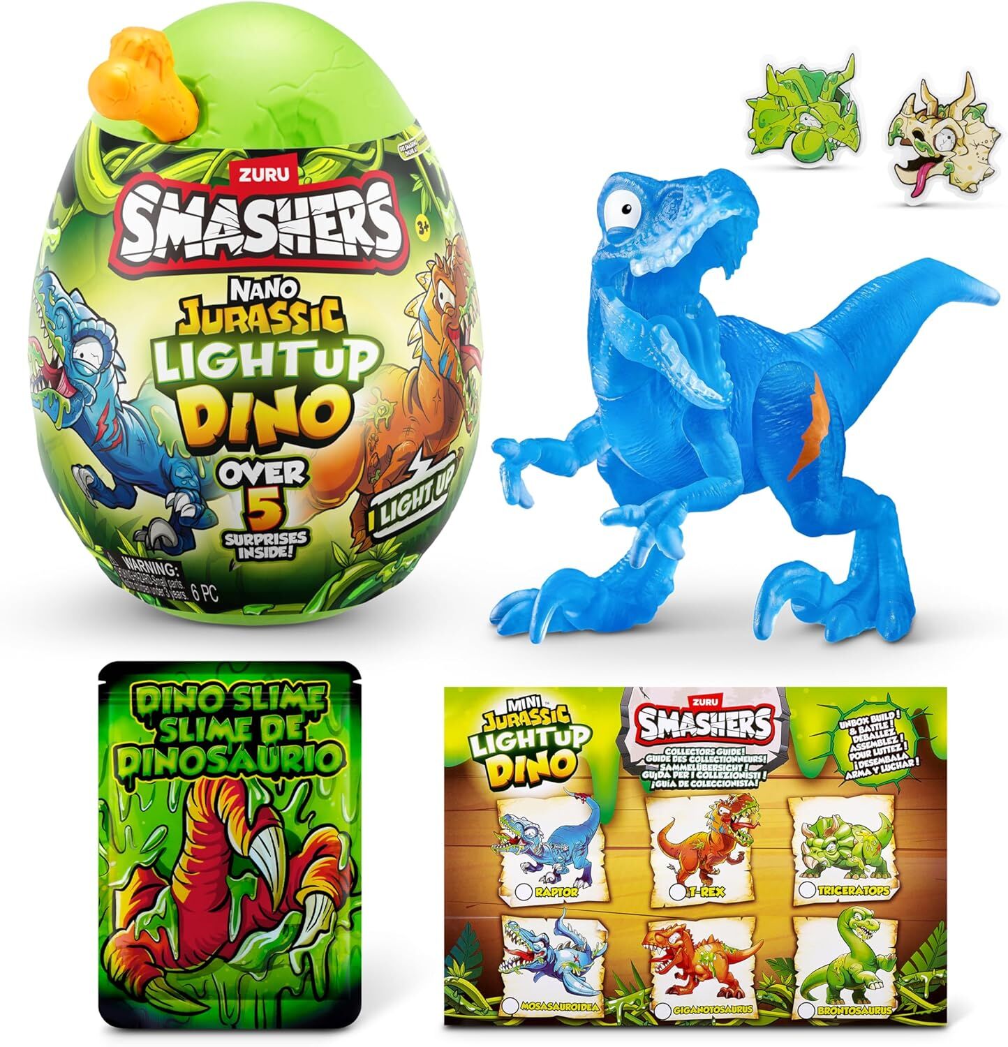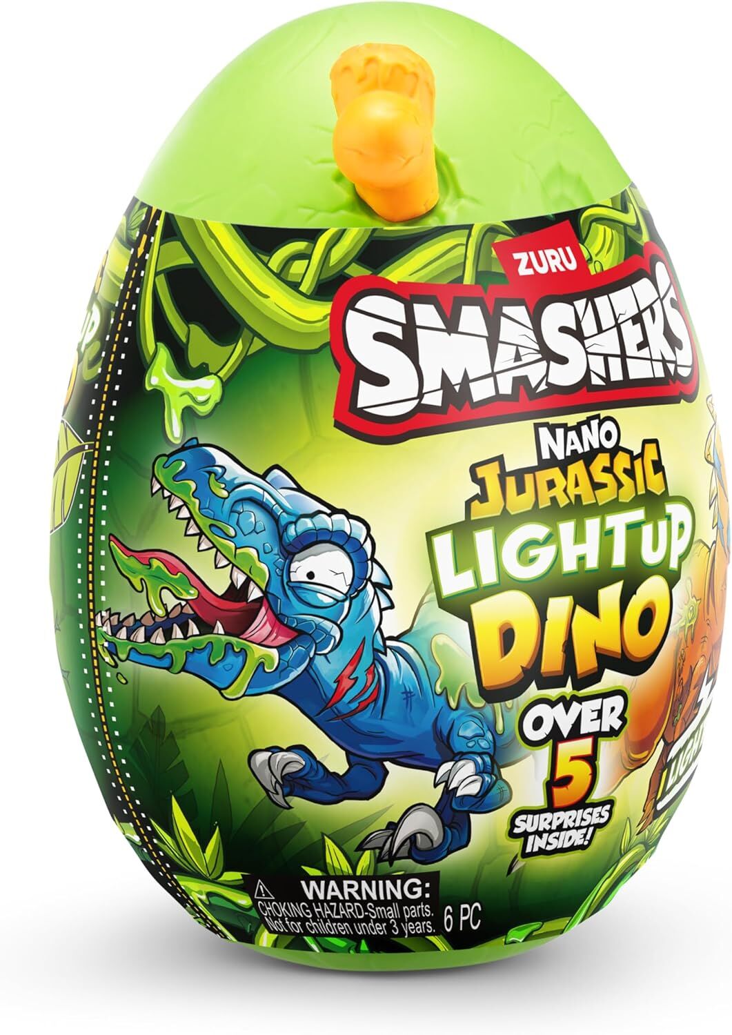 Discover your DINO SMASH-O-SAURS inside the ZURU Smashers Nano Jurassic Light Up Dino Egg. Unwrap, smash, dig into glow-in-the-dark slime, and build the nano SMASH-O-SAUR! Unleash a prehistoric adventure with our glow-in-the-dark dinosaur toy, lighting up the night and bringing ancient wonders to life. Smash through over five epic surprises, including gooey slime, dino parts and glow-in-the-dark stickers! Dig to find your Dino pieces and reveal surprise characters. With six dino characters to collect, the excitement never ends! Get smashing and explore the thrilling world of Smashers!ZURU Smashers Jurassic Light-Up Nano Egg